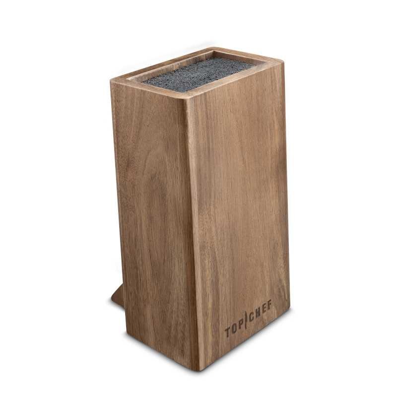 Avec le bloc couteaux Top Chef, rangez vos couteaux tout en les gardant à portée de mains sur le plan de travail. Sa fabrication en bois d’acacia lui donne un design naturel, s’intégrant très bien à tous styles de cuisine.