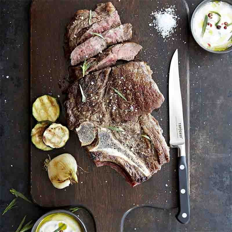 Le Couteau à Steak Top Chef, avec sa lame de 13cm, permet une découpe précise des steaks, mais aussi de tous les plats de viande !