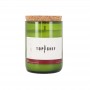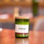 Chaque bougie est façonnée en Provence à partir de bouteilles de vin réutilisées, de cire de soja coulée à la main autour d’une mèche 100% coton, un capuchon en liège et un étui en carton recyclé et recyclable.