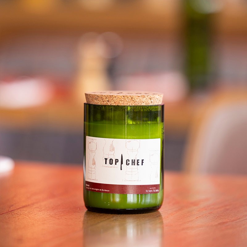 Les bougies Top Chef sont issues du savoir-faire artisanal de l’atelier Maison Tchin Tchin, qui accorde œnologie et parfumerie pour concevoir des parfums d'ambiance inédits autour du vin, offrant ainsi une expérience olfactive unique, à table ou ailleurs.