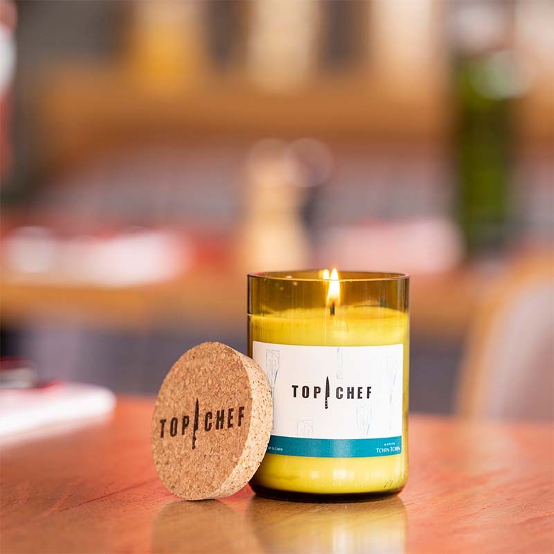 Les bougies Top Chef sont issues du savoir-faire artisanal de l’atelier Maison Tchin Tchin, qui accorde œnologie et parfumerie pour concevoir des parfums d'ambiance inédits autour du vin, offrant ainsi une expérience olfactive unique, à table ou ailleurs.