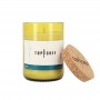 Chaque bougie est façonnée en Provence à partir de bouteilles de vin réutilisées, de cire de soja coulée à la main autour d’une mèche 100% coton, un capuchon en liège et un étui en carton recyclé et recyclable.
