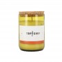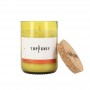 Chaque bougie est façonnée en Provence à partir de bouteilles de vin réutilisées, de cire de soja coulée à la main autour d’une mèche 100% coton, un capuchon en liège et un étui en carton recyclé et recyclable.