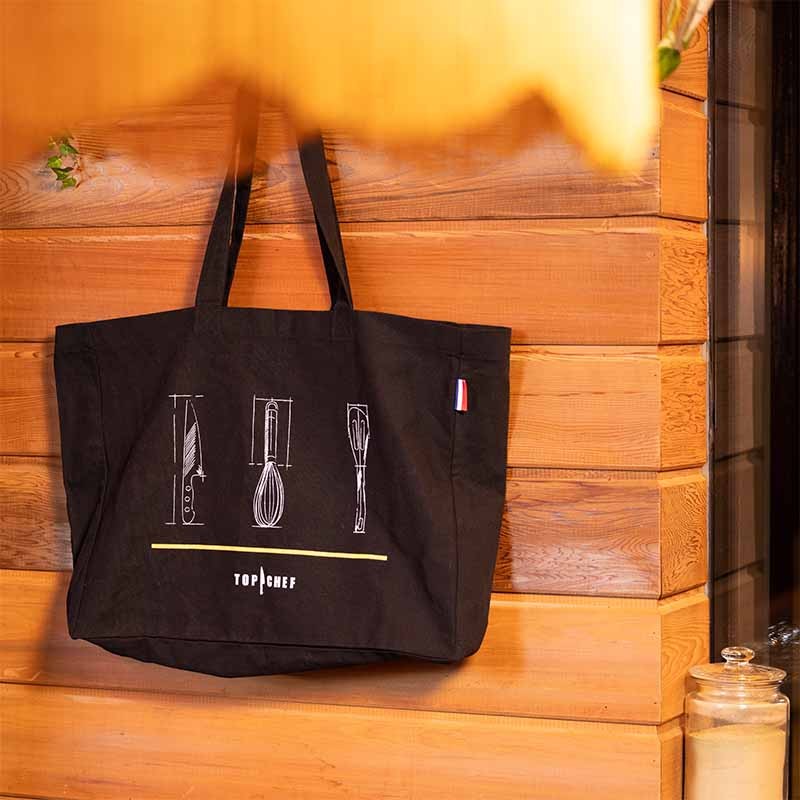 En effet, la conception du cabas Top Chef reflète, elle aussi, l’excellence à la Française. Confectionné dans un atelier parisien, il est fabriqué à partir d'un coton épais de 220g, ce qui en fait un sac très solide.