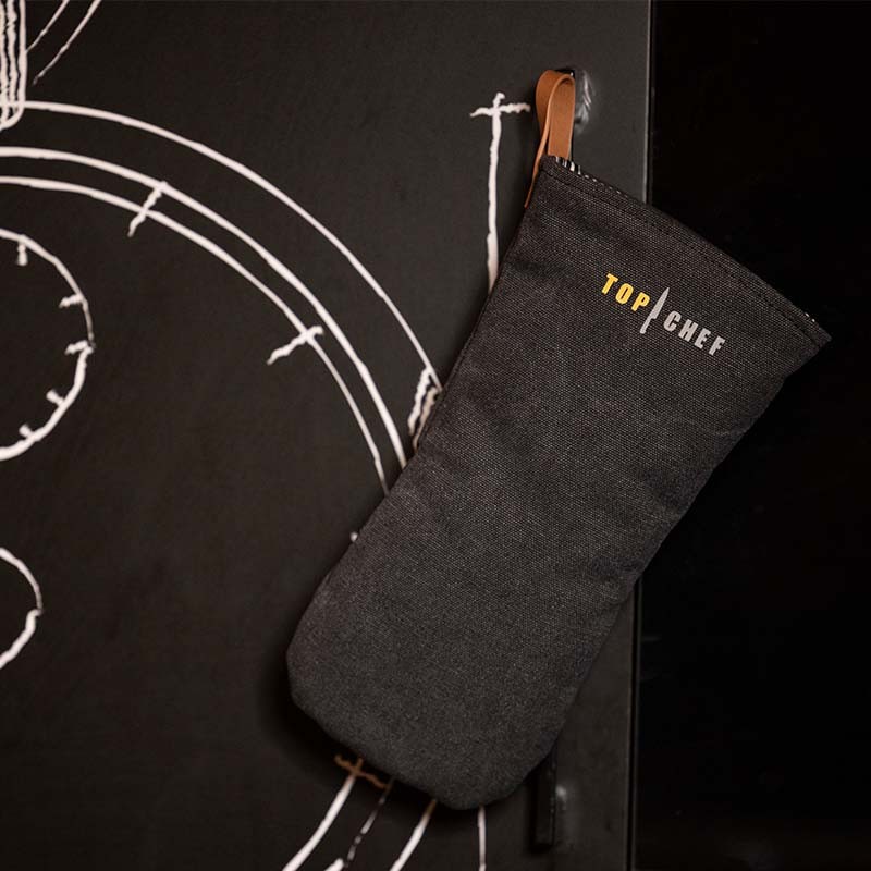 Lorsque vous ne l'utilisez pas, suspendez simplement votre gant Top Chef à l'aide de sa boucle en cuir, ce qui en fait un élément décoratif à part entière dans votre cuisine.